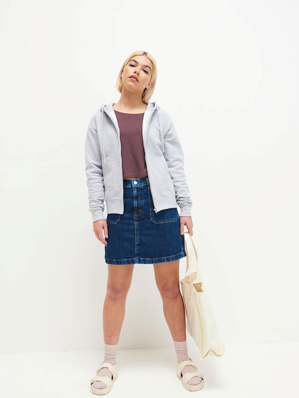 - Full length covered plastic YKK zip. Front pouch pockets.