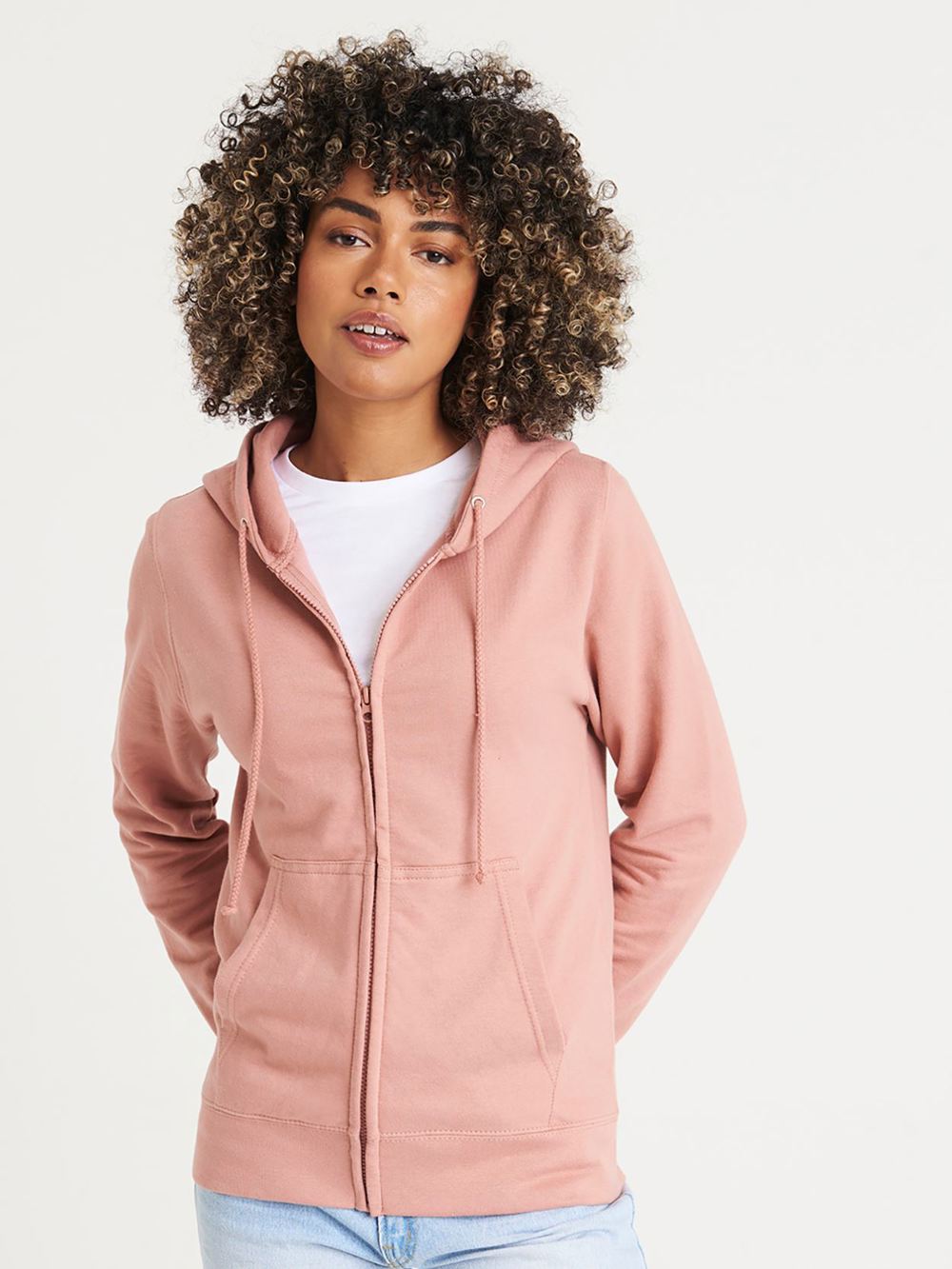 Ladies zip covered hoodie available in pastel colours.
