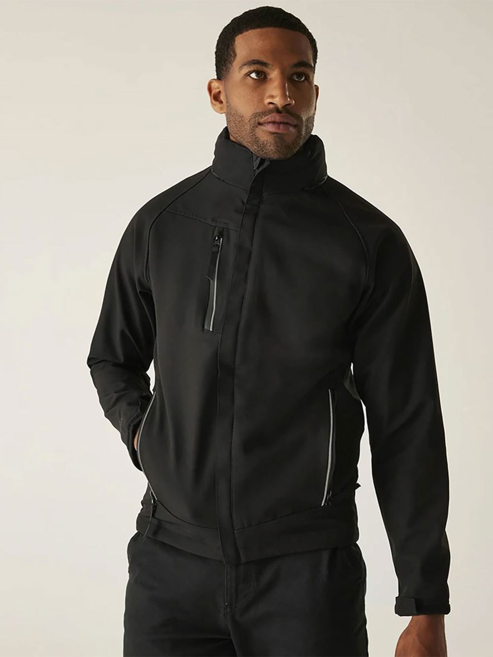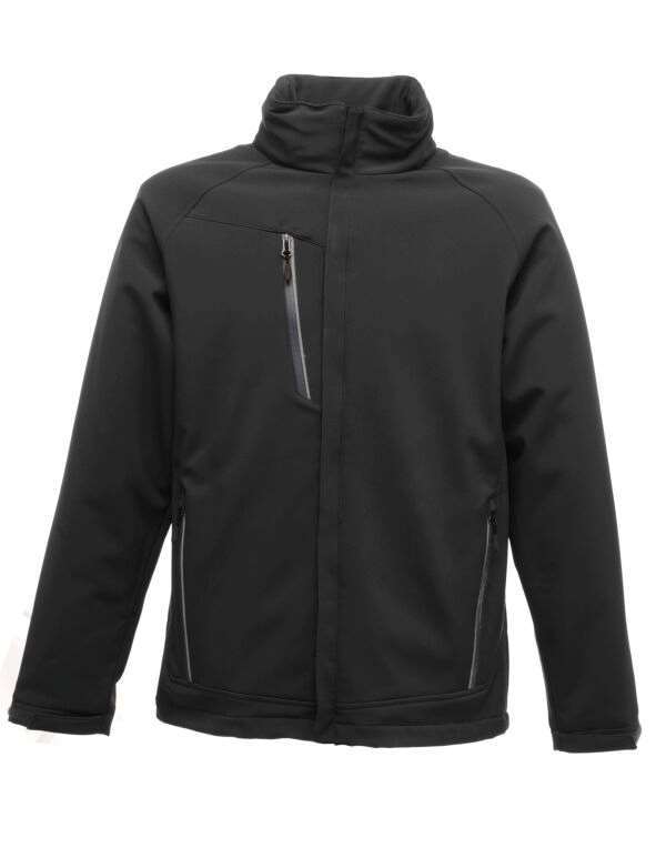 - Warm backed stretch soft shell fabric has a 96% polyester/4% elastane outer.