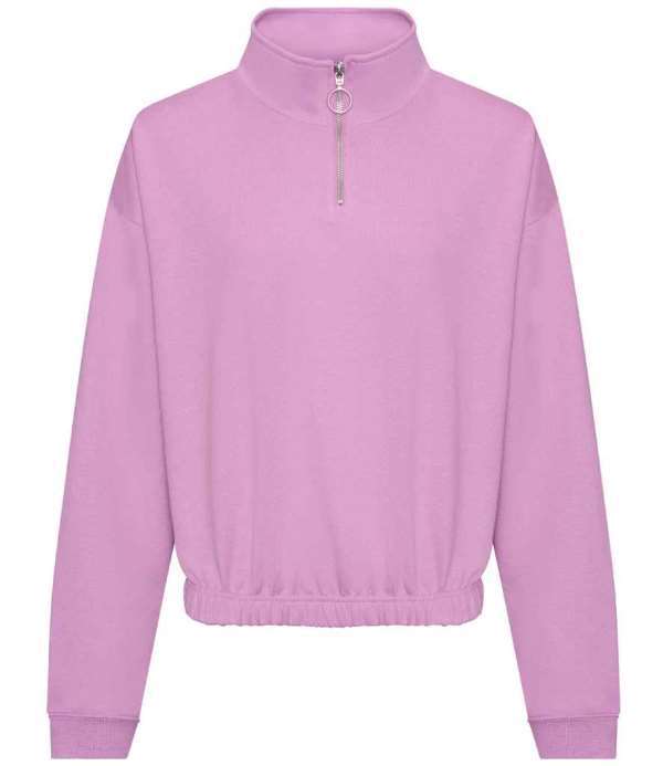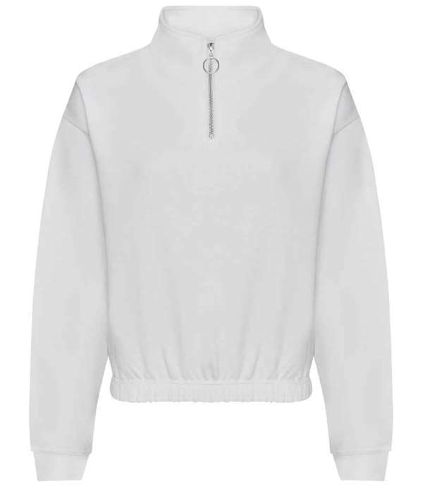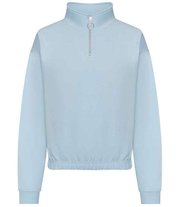 Ladies modern cut cropped 1/4 zip sweat with modern colours.