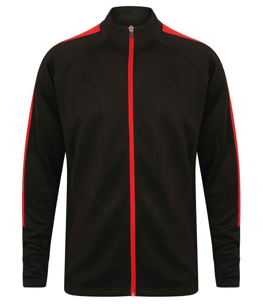 - Full length contrast zip.