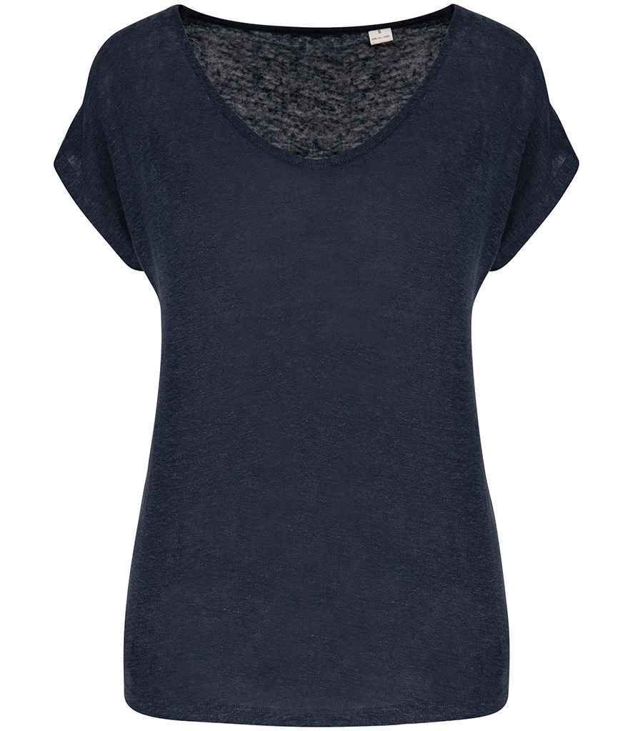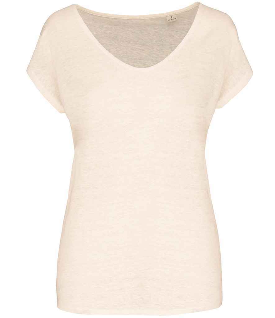 Spasso Ladies V Neck Linen T-Shirt